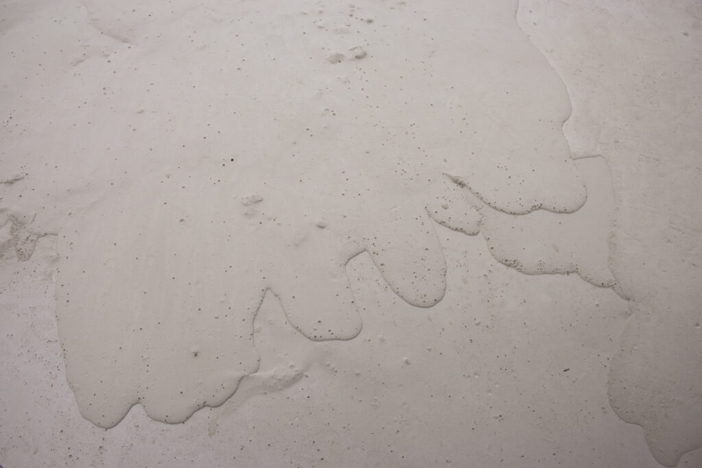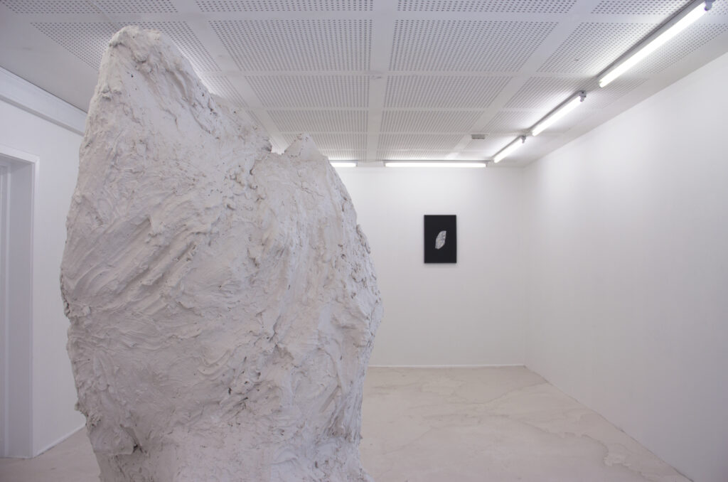 Site-specific sculpture of plaster stretching to the corners of the room. Highest point 2 m and lowest point 7 cm (the floor). Photo 38 x 57 cm. Text by Miriam H. Wistreich based on the work and conversations about it.