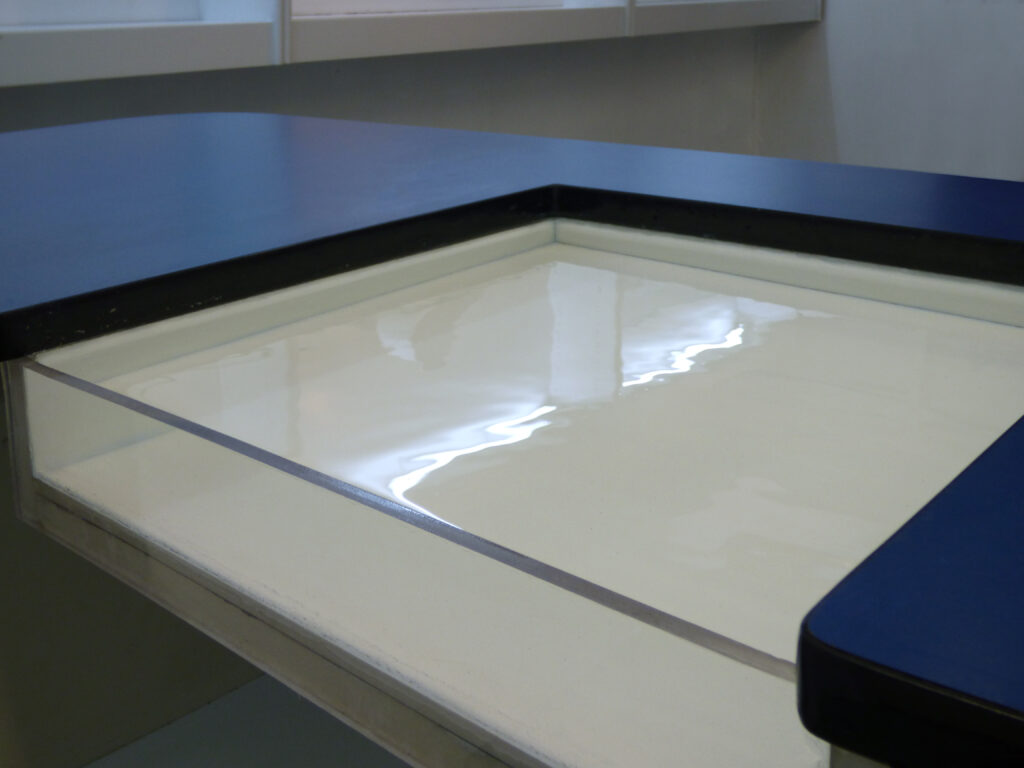 - plexiglass, water, counter of the kiosk, 43 x 41 cm. 2024